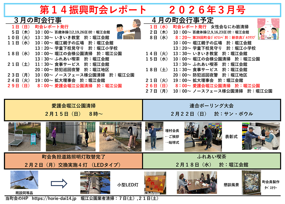 堀江第14振興町会レポート2026年3月号 投稿日: 2026年3月1日2026年2月27日 by Horie-horie-horiE堀江第14振興町会レポート2026年3月号をアップしました。 町会レポートカテゴリーの記事